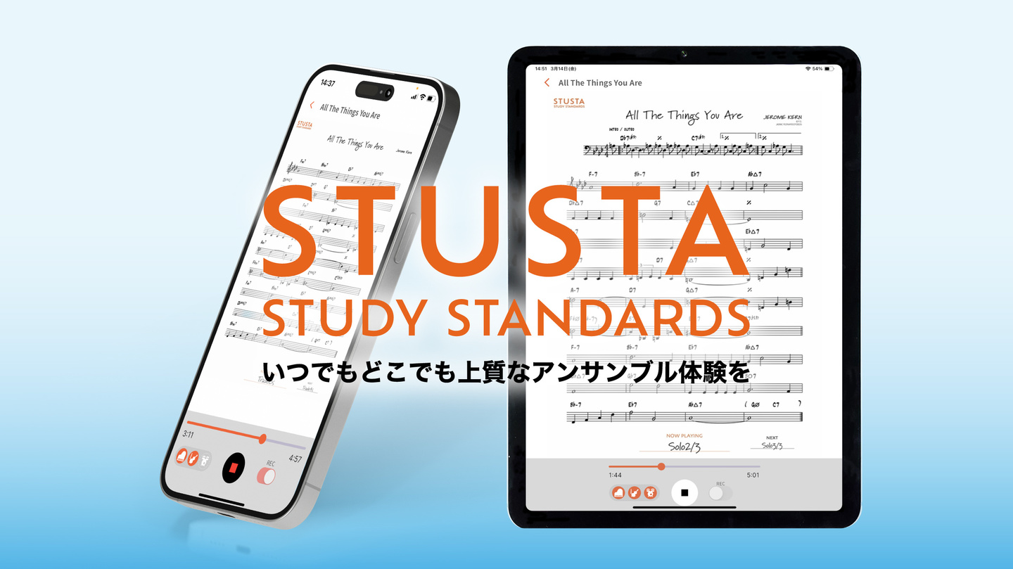 STUSTAは皆さまに上質なアンサンブル体験をお届けします。ライブやジャムセッションに参加できない時でも、アプリを立ち上げれば、日本ジャズシーンで活躍する様々なアーティストとのアンサンブル体験があなたを待っています。