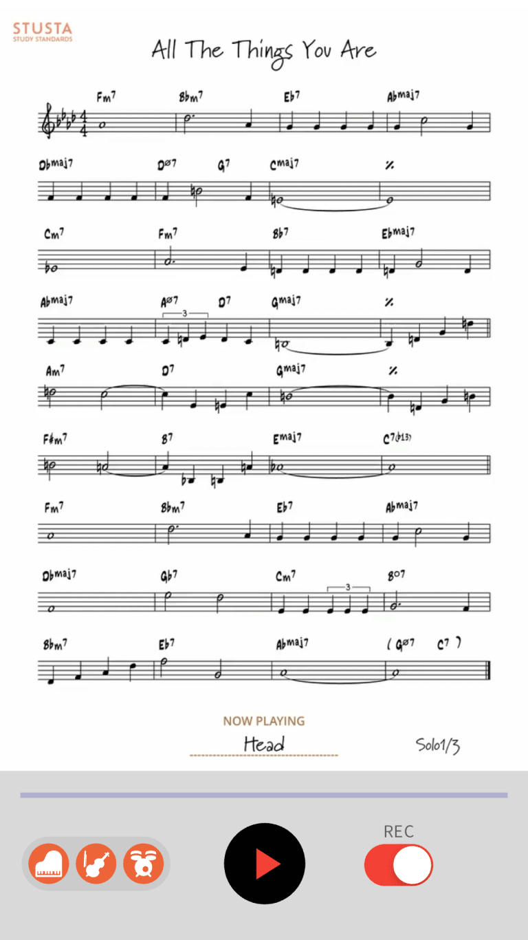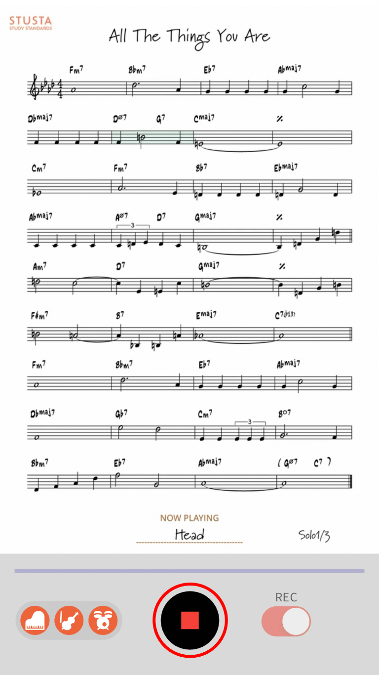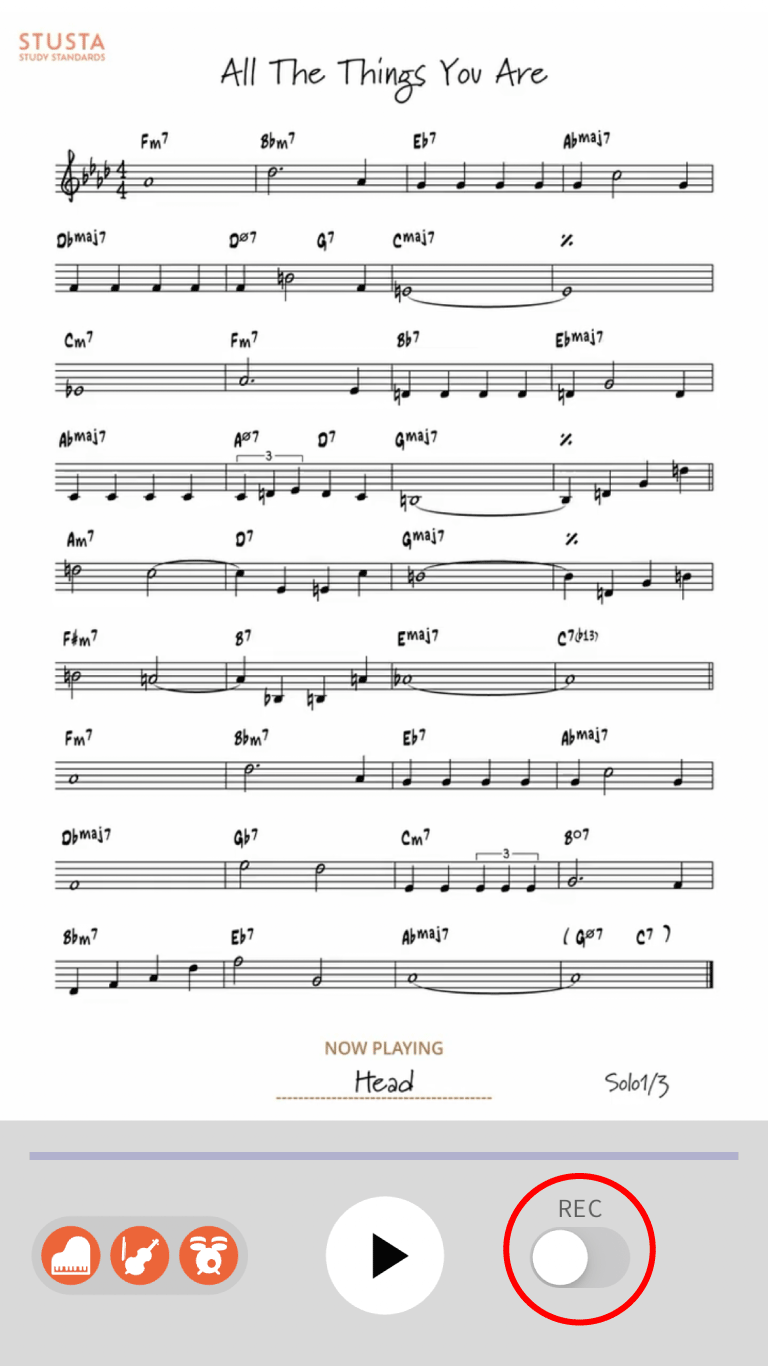 1. デバイスから直接音源が再生される状態(ヘッドフォンなど接続していない状態)であることを確認し、RECボタンをオンにする。