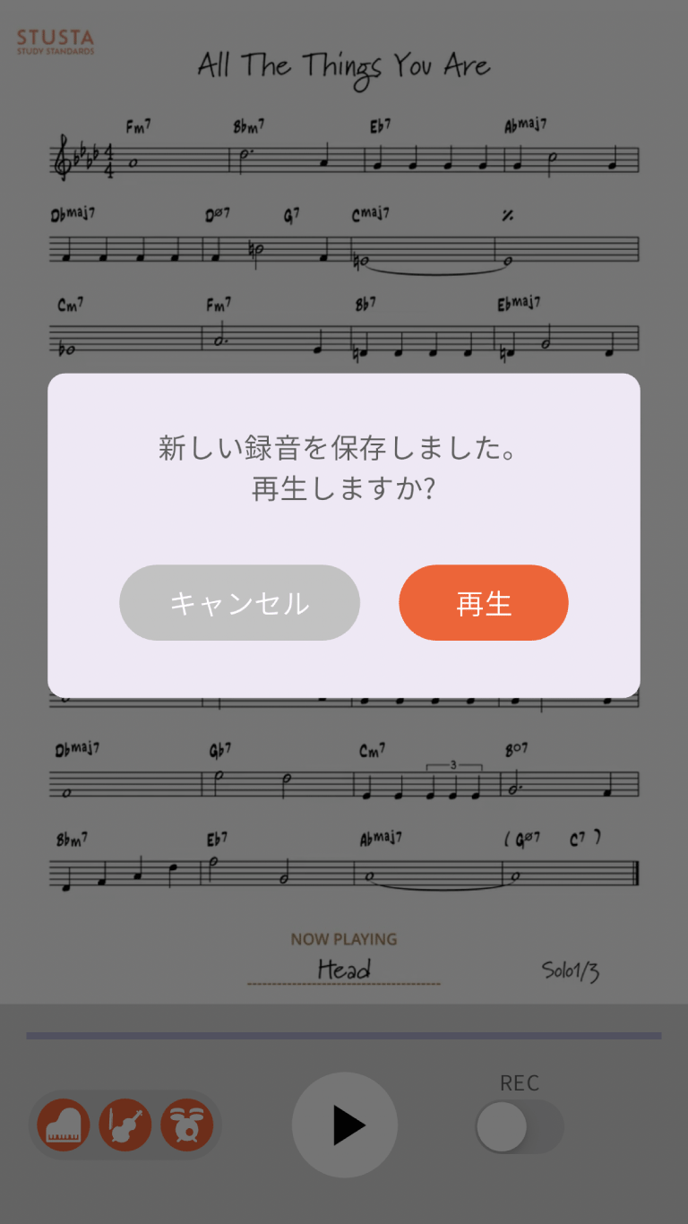 3. 再生を選び、プレイバック画面の再生ボタンを押し録音した音源を確認する。