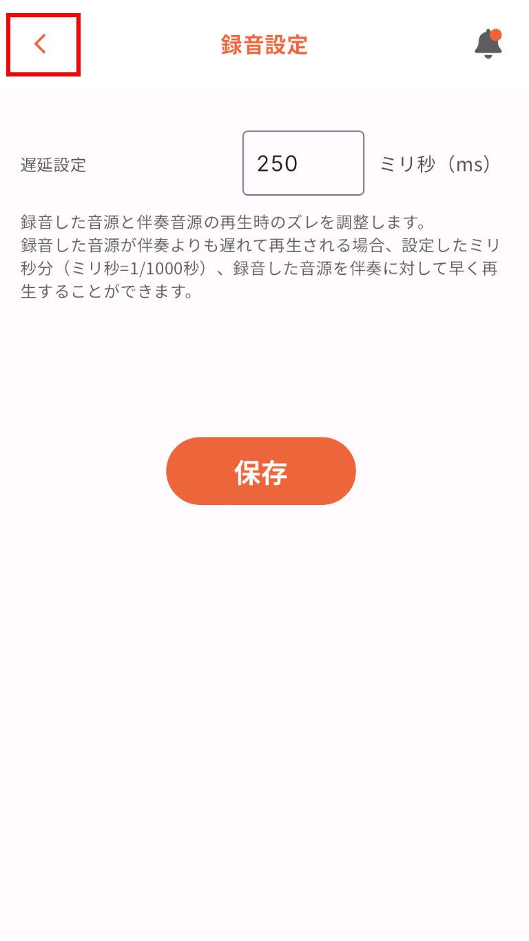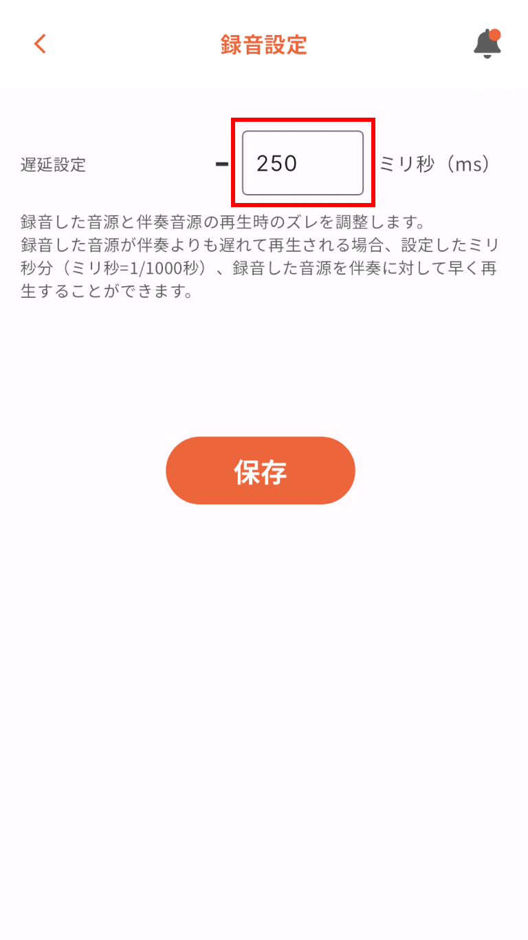 ※数字の値が大きくなるほど、伴奏音源が遅く(録音音源が早く)再生されます。デバイスによりますが、現時点では200msから700msの間で適切な値になることが多いようです。