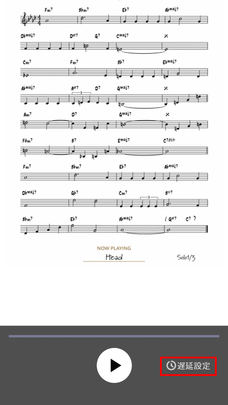 4. 音源がずれて再生される場合、右下の遅延設定ボタンより遅延設定画面へ。任意の値を入力し保存する。